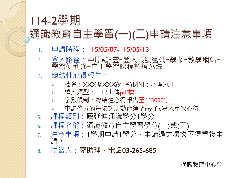 - 【通識中心】114-2 學期通識自主學習課程須知 https://itouch.cycu.edu.tw/active_project/cycu1200h_06/ann/spa/#/annList?SN=67848