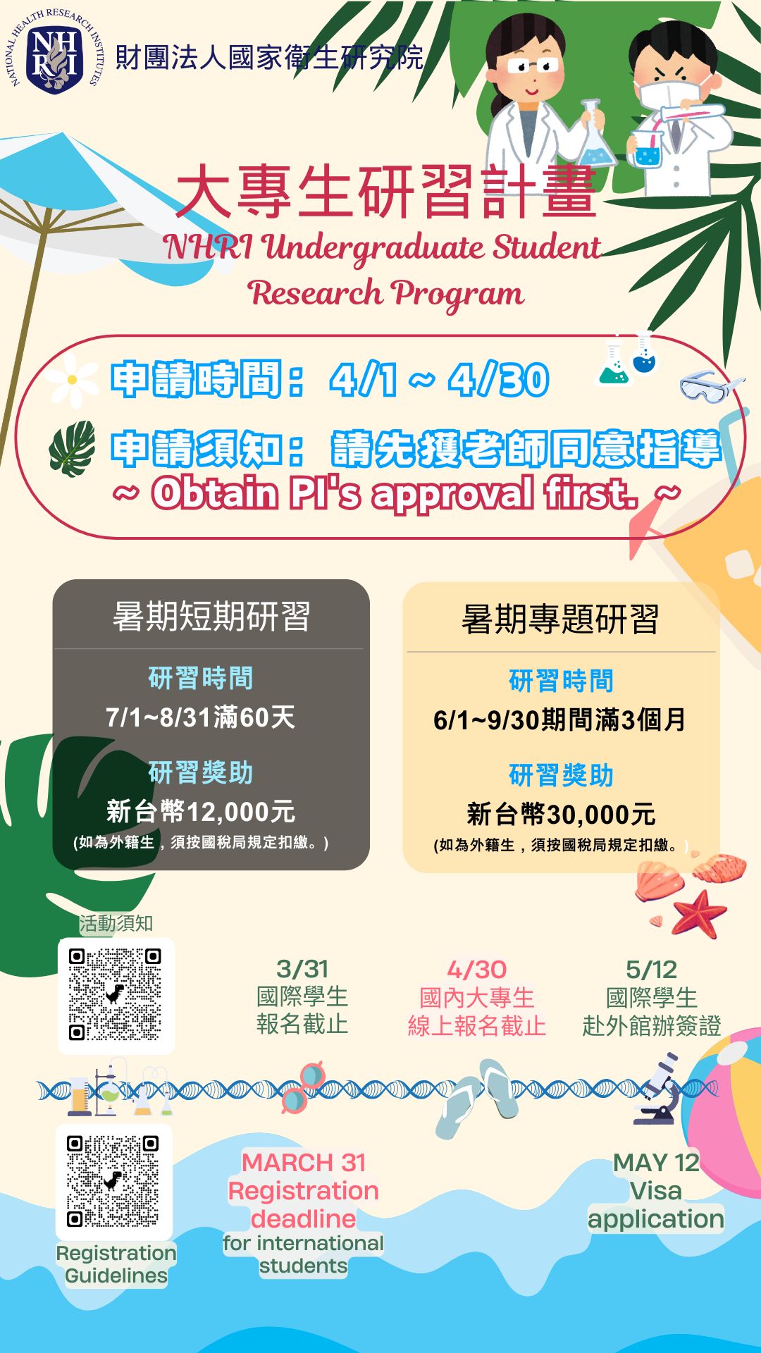 ※本次國衛院大專生實習計畫不列入本系實習學分。