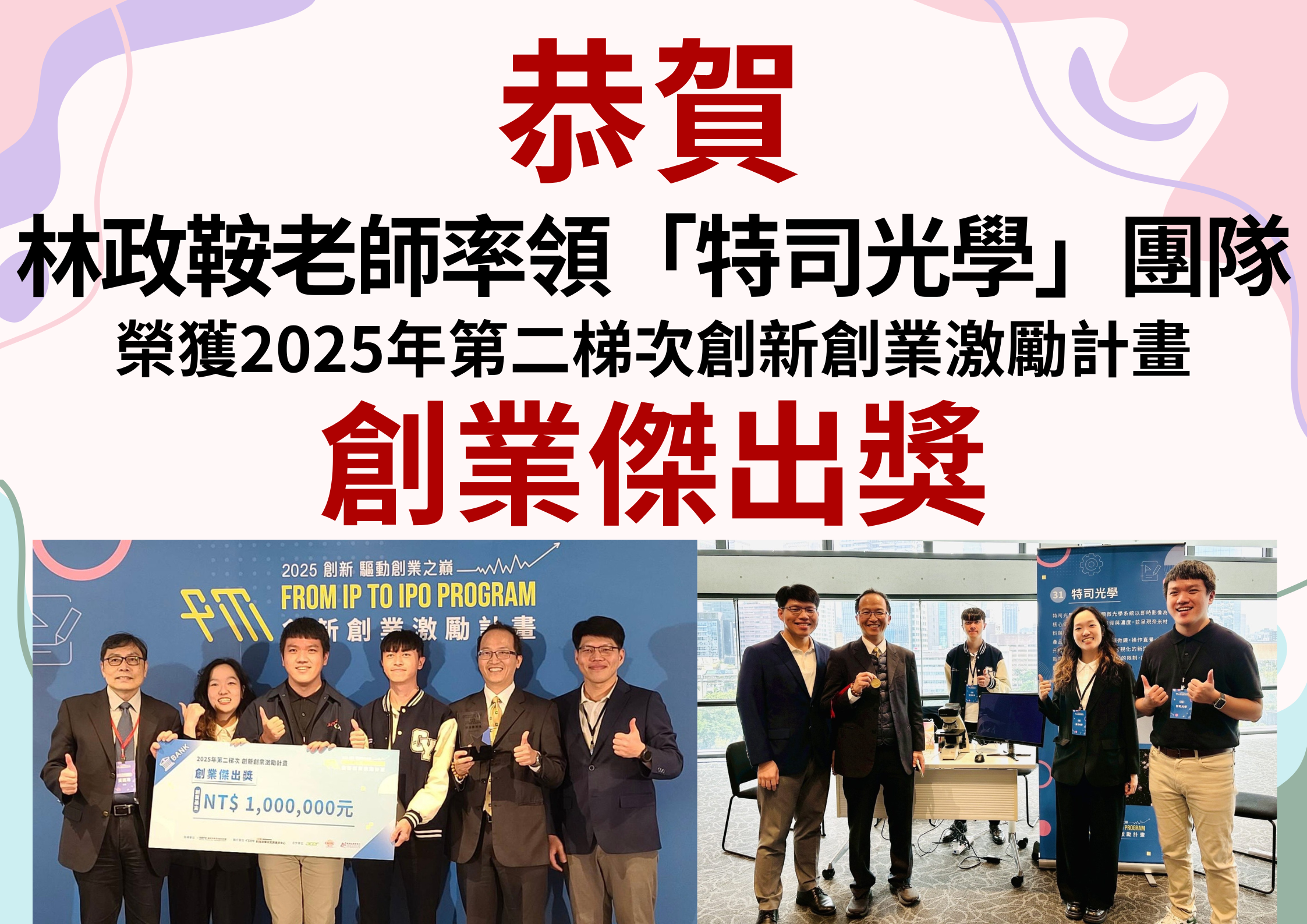 【恭賀】林政鞍老師率領團隊榮獲2025FITI第二梯次創業傑出獎!